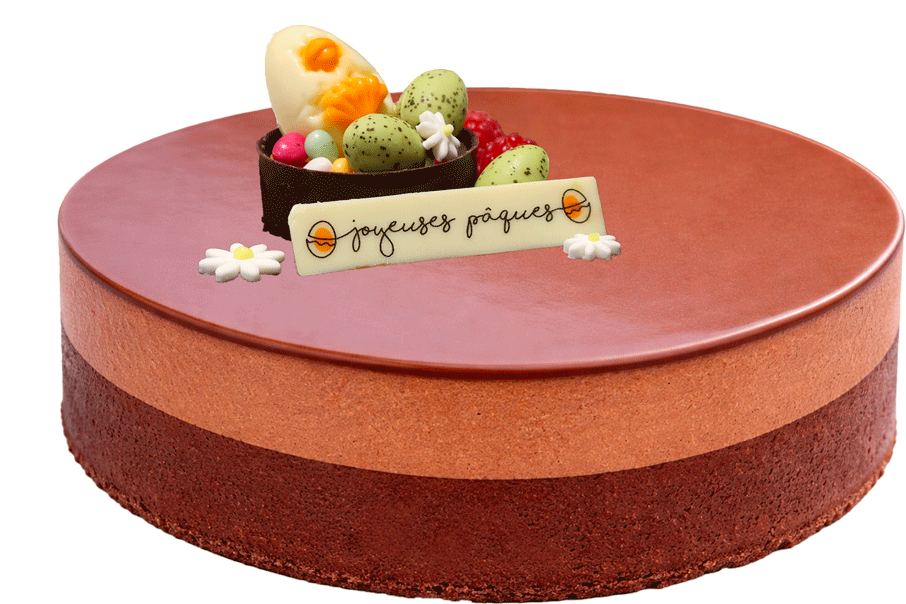 Pour Pâques, votre boulangerie La mie de pain met le chocolat à l’honneur avec un entremets 3 chocolats