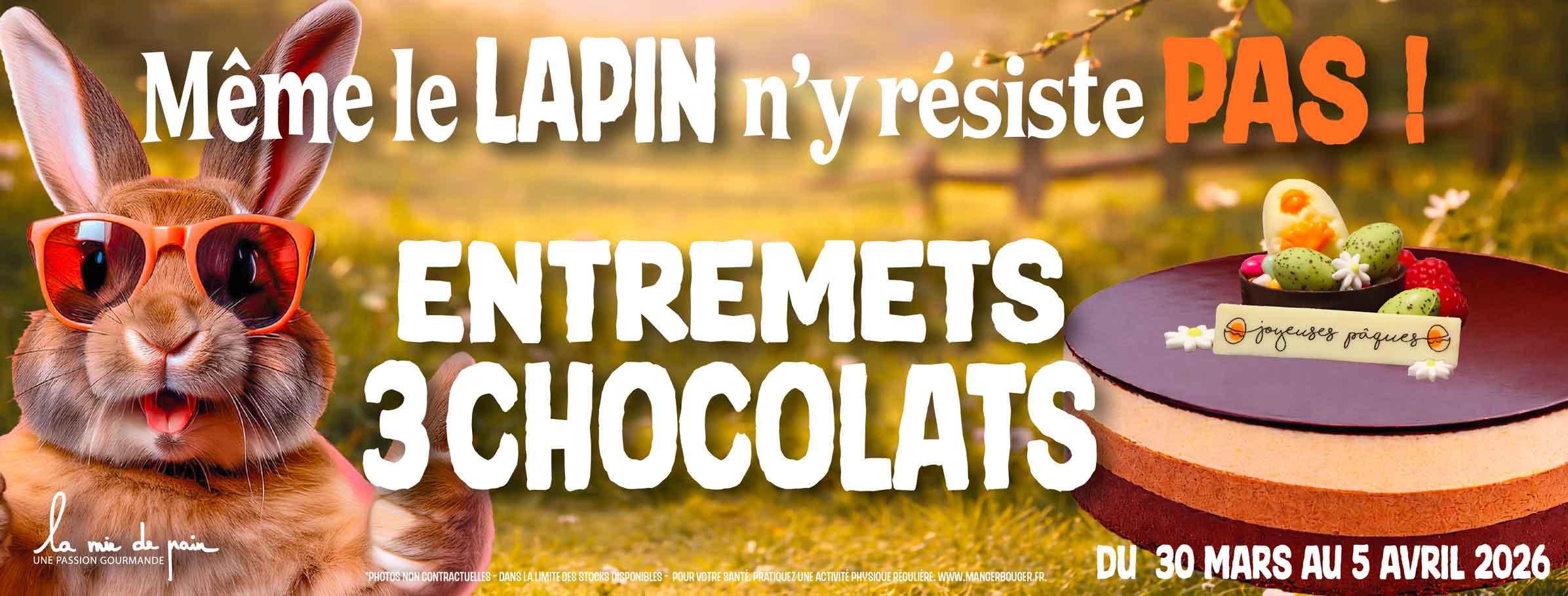 Pour Pâques, votre boulangerie La mie de pain met le chocolat à l’honneur avec un entremets 3 chocolats